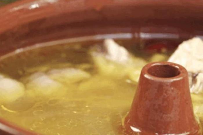 7、炊锅冬至这天,在红河,还会吃一种地道的老派火锅,叫做炊锅。炊锅制作简单,只需把白菜、豆腐、粉丝、莲藕、木耳、香菇一层一层铺在锅里,放入一层云腿片、五花肉片、鸡蛋卷,再把鸡汤或肉汤倒进去,撒上草果、胡椒粉等调料,盖上盖子,中筒里放进烧红的木炭煮熟,就可以食用了。热腾腾的炊锅充盈着热气,吃上一口,身子从内到外开始变得暖和,是冬季驱寒的美食之一。